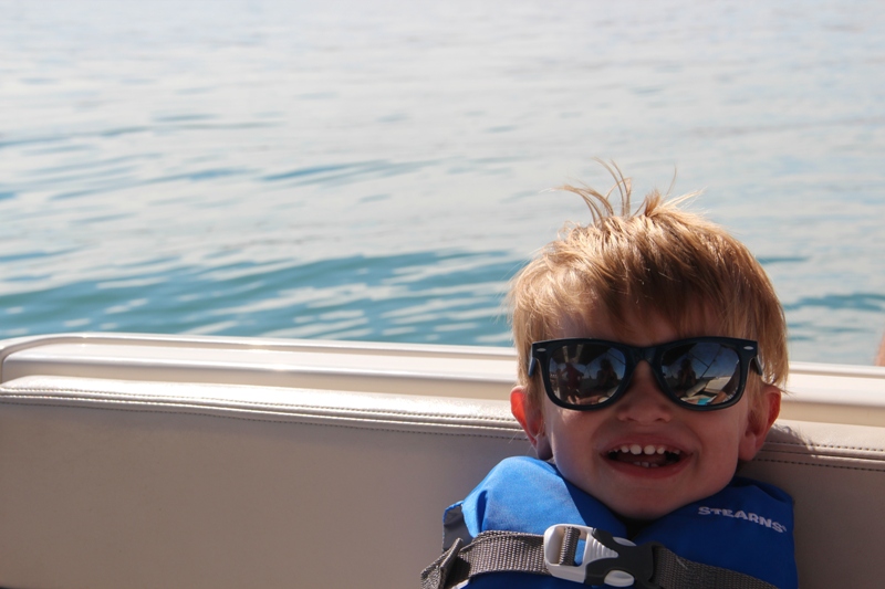 + jack LOVED the boats, especially driving them with pop pop. he did not so much love the water. the closest i could get him (without screaming) was to float in a tube, which he thought was cool. he also loved digging in the sand and exploring the beach (or really, doing everything) with his grammie. all in all, a successful first boating trip for the cute little monkey.